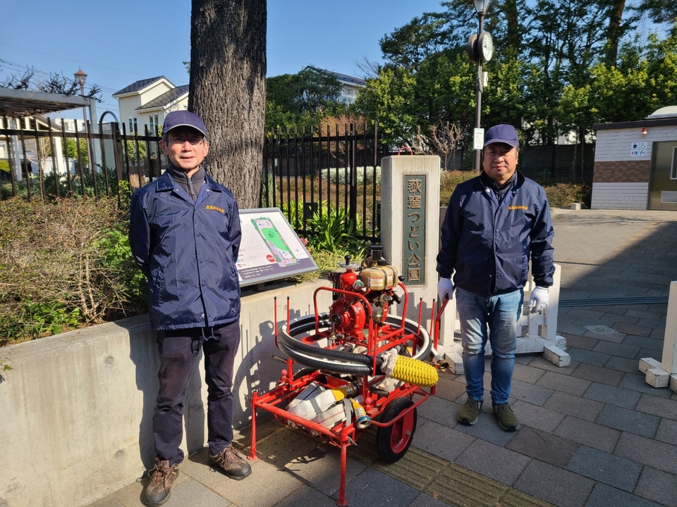 令和8年3月 荻窪東町会・防災部訓練を行いました。 2026-03-22 14. 防火・防災部 3月22日3名参加。大田黒公園及び荻窪つどい公園でエンジン始動、ホース接続等の訓練を行った。 タグ : 防災訓練 「令和8年2月 荻窪東町会・防災部訓練を行いました。」