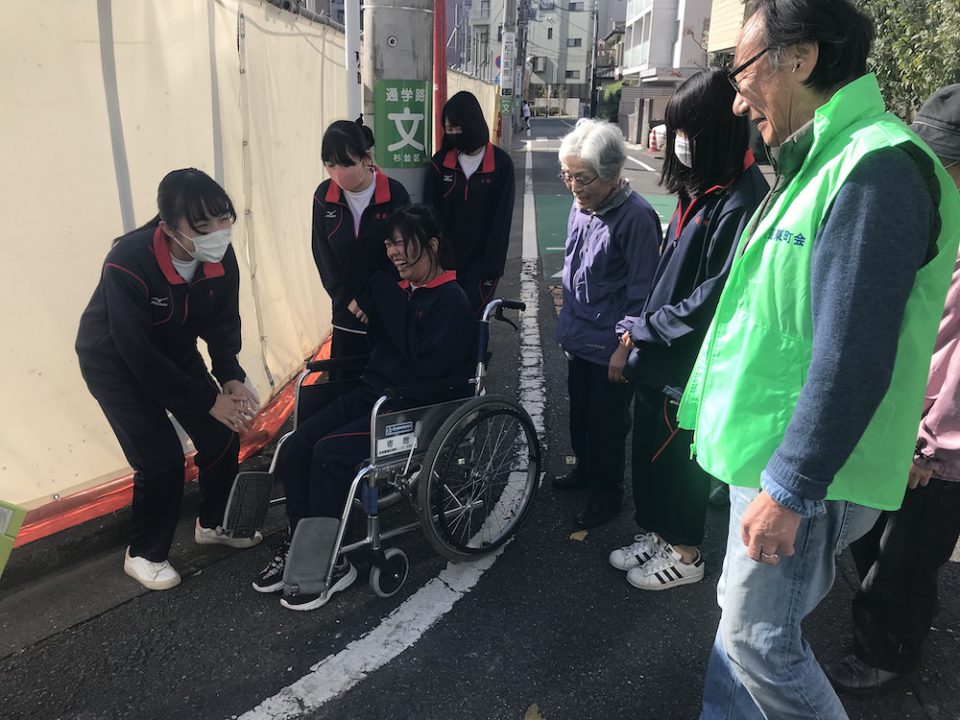 荻窪高校の生徒さんに車椅子の使い方を教えながら向かいました。